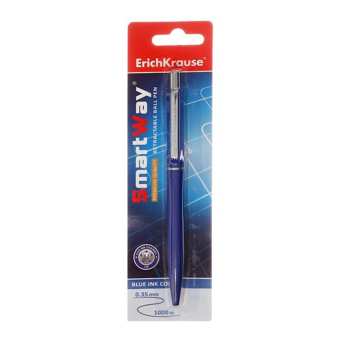 Купить ErichKrause Ручка шариковая автоматическая Smart, узел 0.7 мм, чернила синие, длина линии письма 1000 метров, блистер