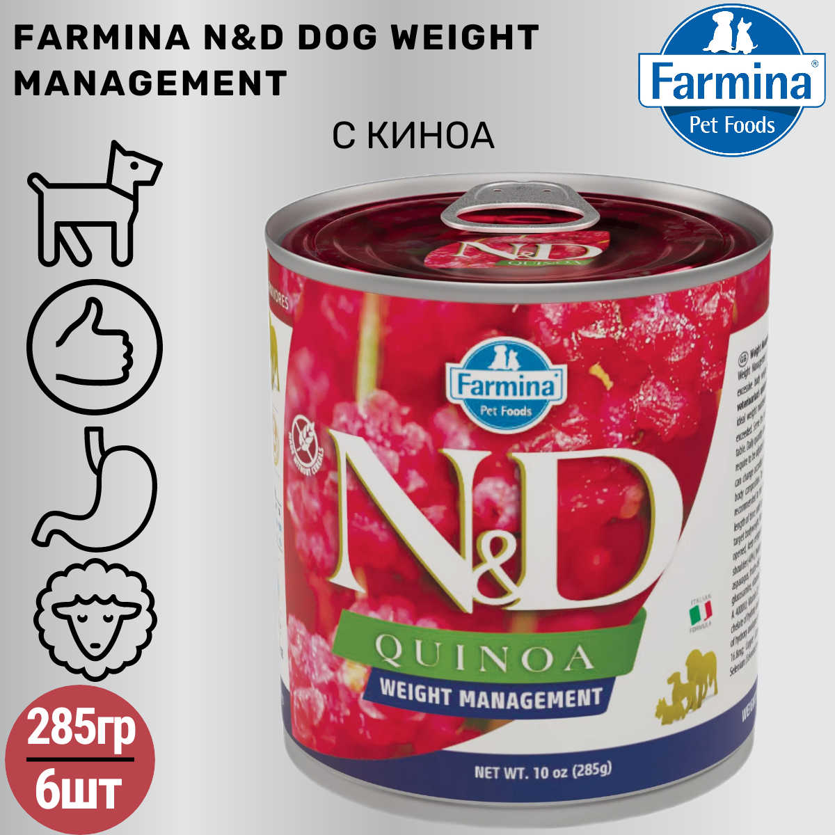 Farmina N&D Quinoa Dog Weight Management влажный беззерновой корм для взрослых собак для контроля веса с киноа и ягненком - 285 г (6 шт в уп)