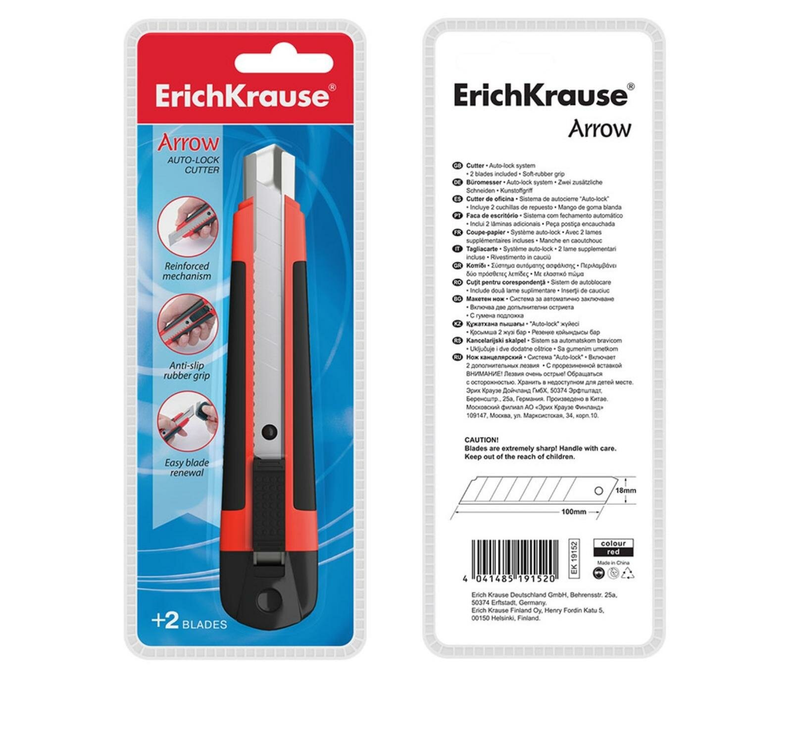 Нож канцелярский 18 мм, Erich Krause Arrow, с автоматической системой фиксации лезвия auto-lock и на .