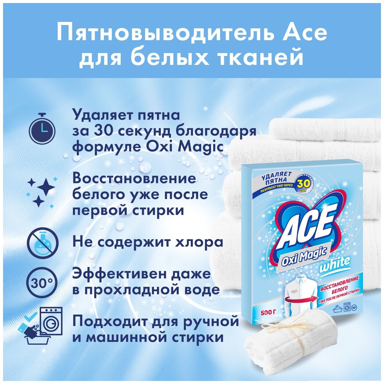 СохранитьПятновыводитель Ace Oxi Magic White, 500 г интересное: