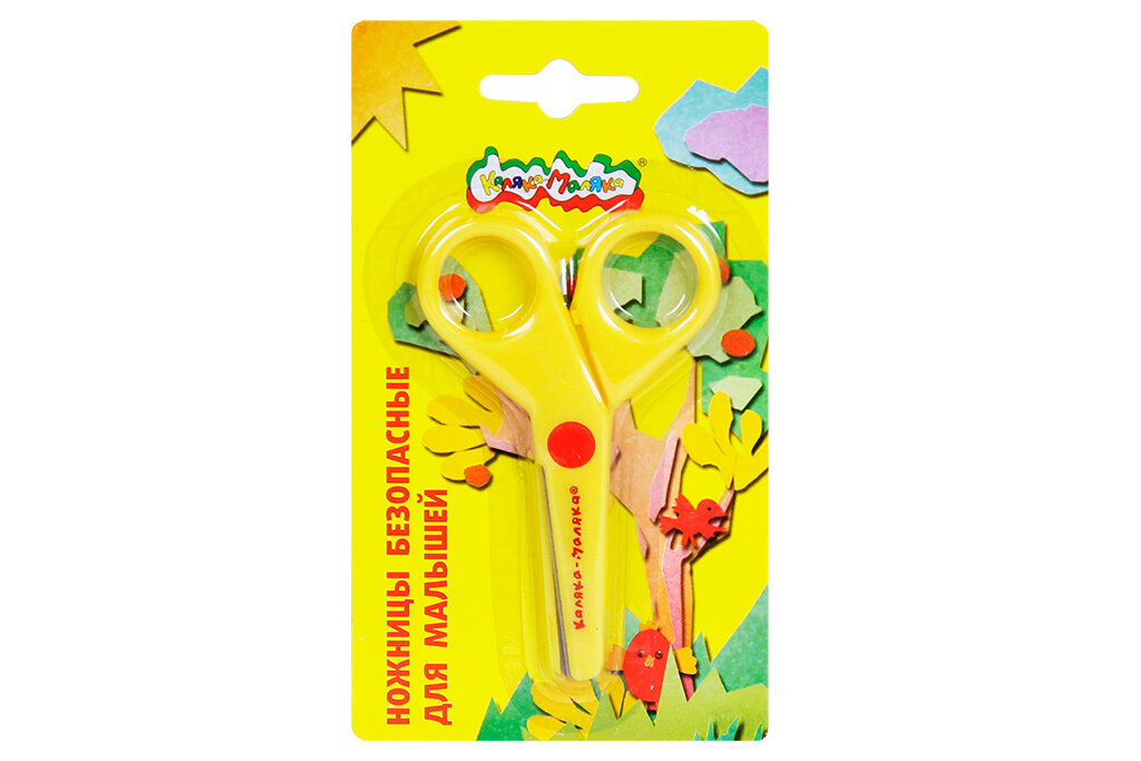 Ножницы детские для малышей канцелярские Каляка-Маляка маленькие пластиковые безопасные желтые