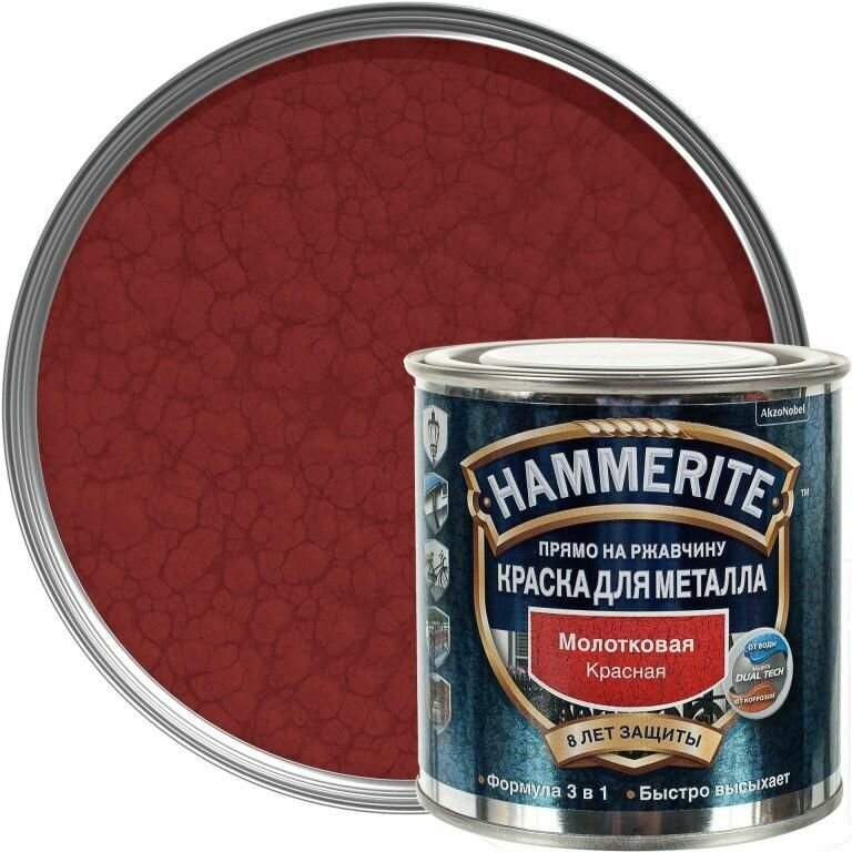 HAMMERITE краска для металла с молотковым эффектом, прямо на ржавчину, красная (0,75л)