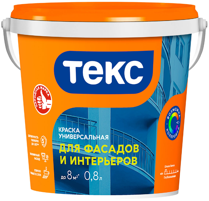 Текс краска фасадная матовая (6,5кг) / текс краска фасадная в/э акрилатная глубокоматовая (6,5кг) класс универсал