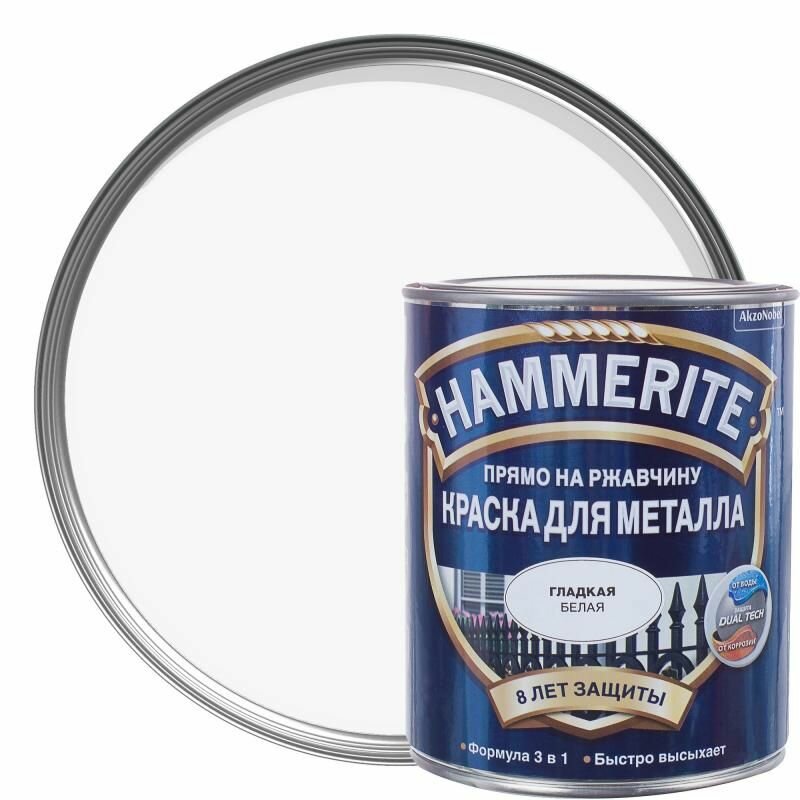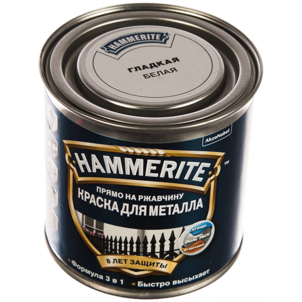 Краска по металлу Hammerite гладкая белая 0.5 л.