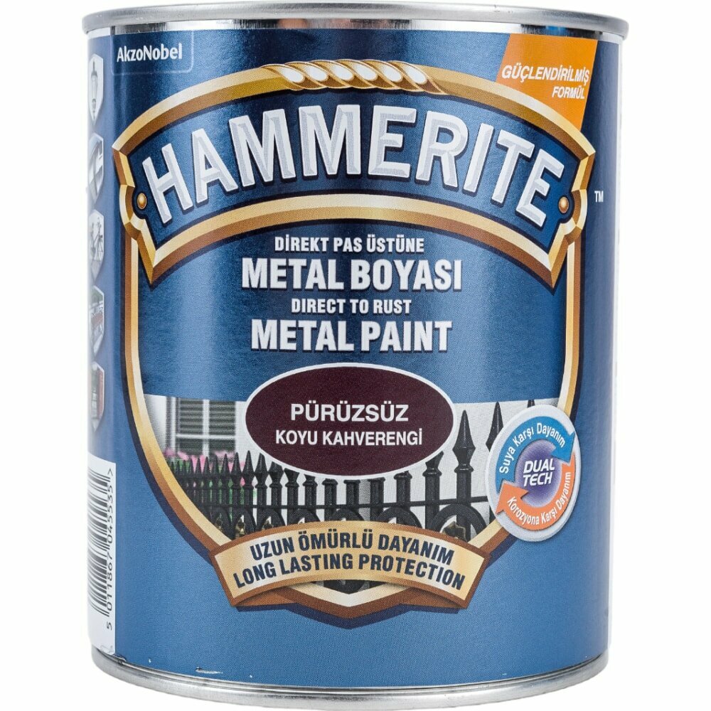 Краска для металла 3 в 1 прямо на ржавчину Hammerite гладкая глянцевая (0,75л) коричневый RAL 8017