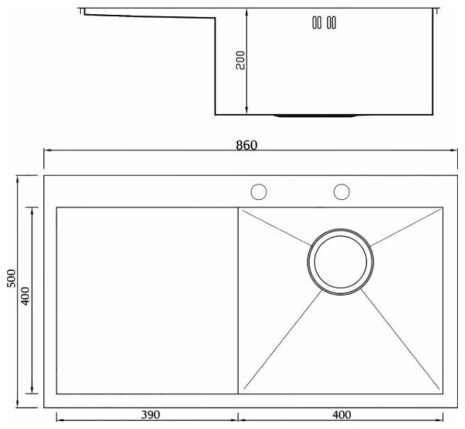 | Отверстие под смеситель | есть |