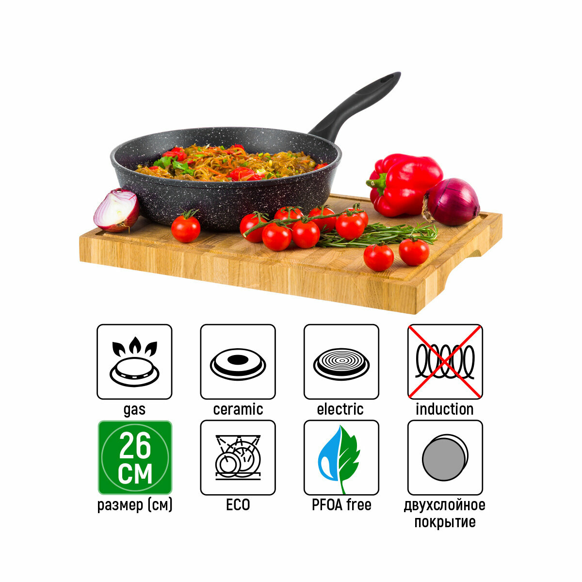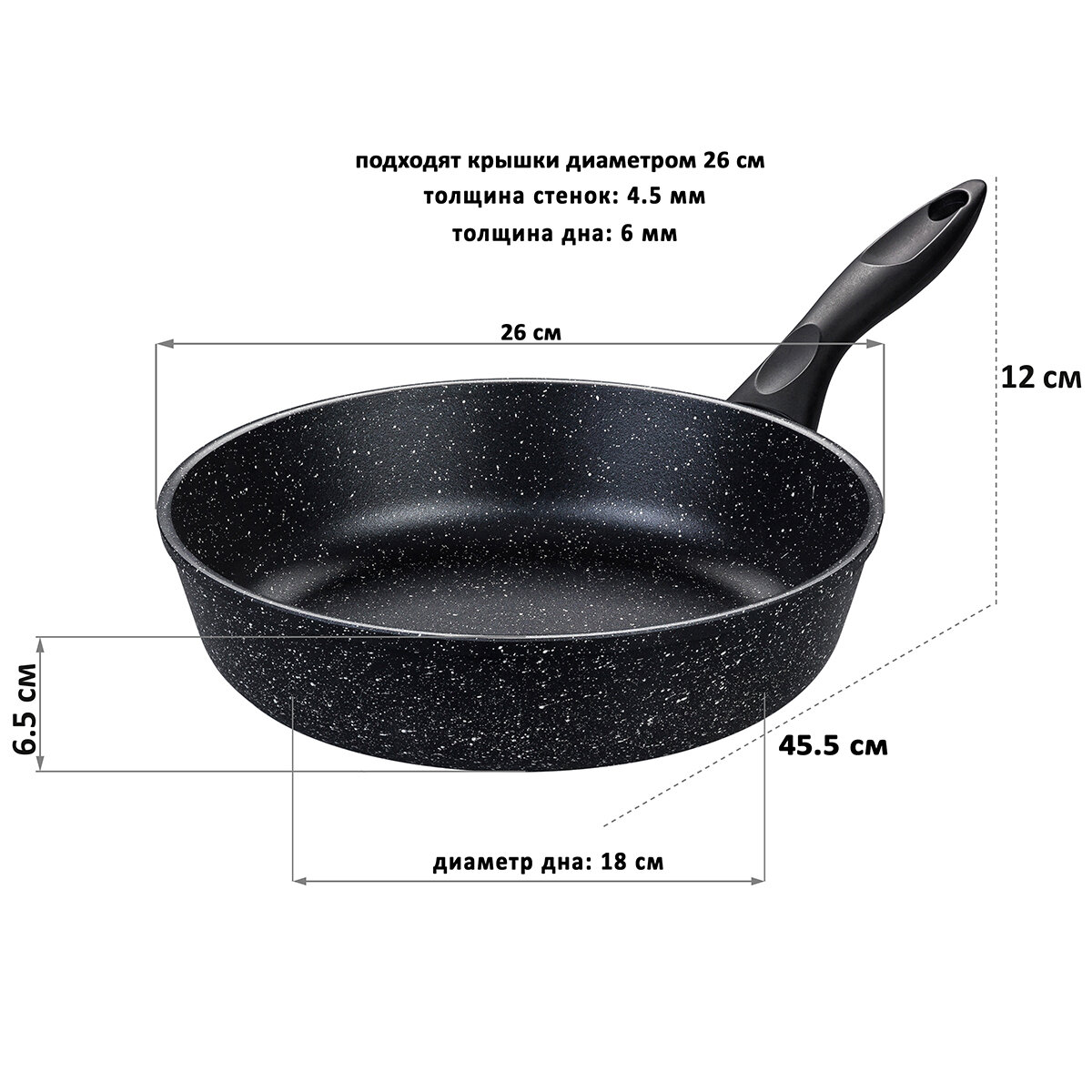 Сковорода глубокая, 26 см гранит, без крышки