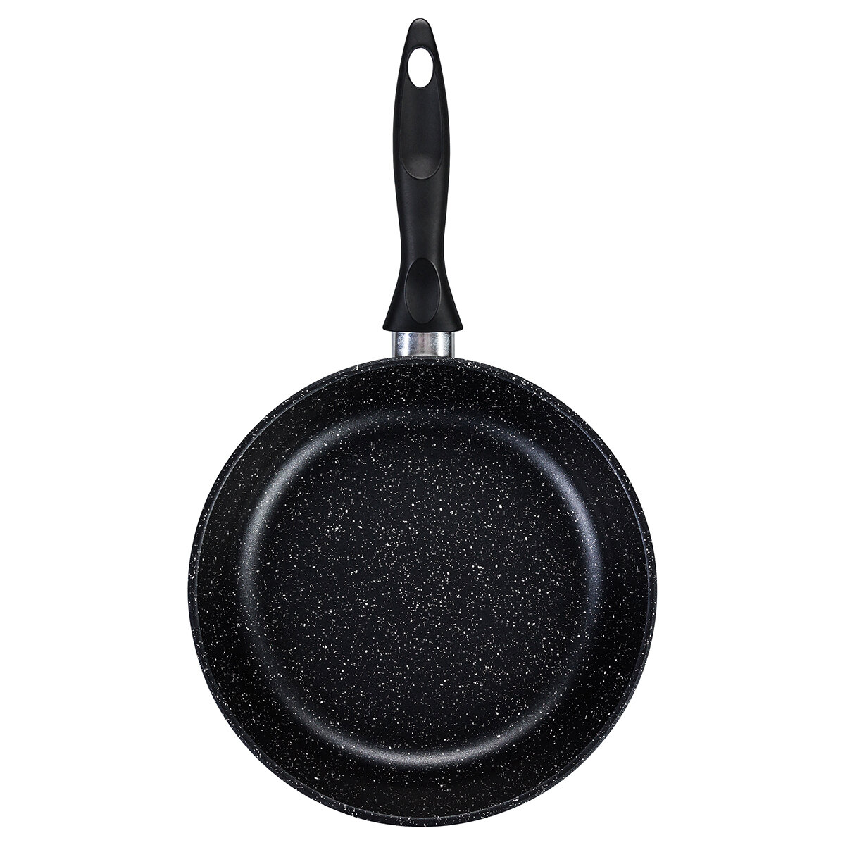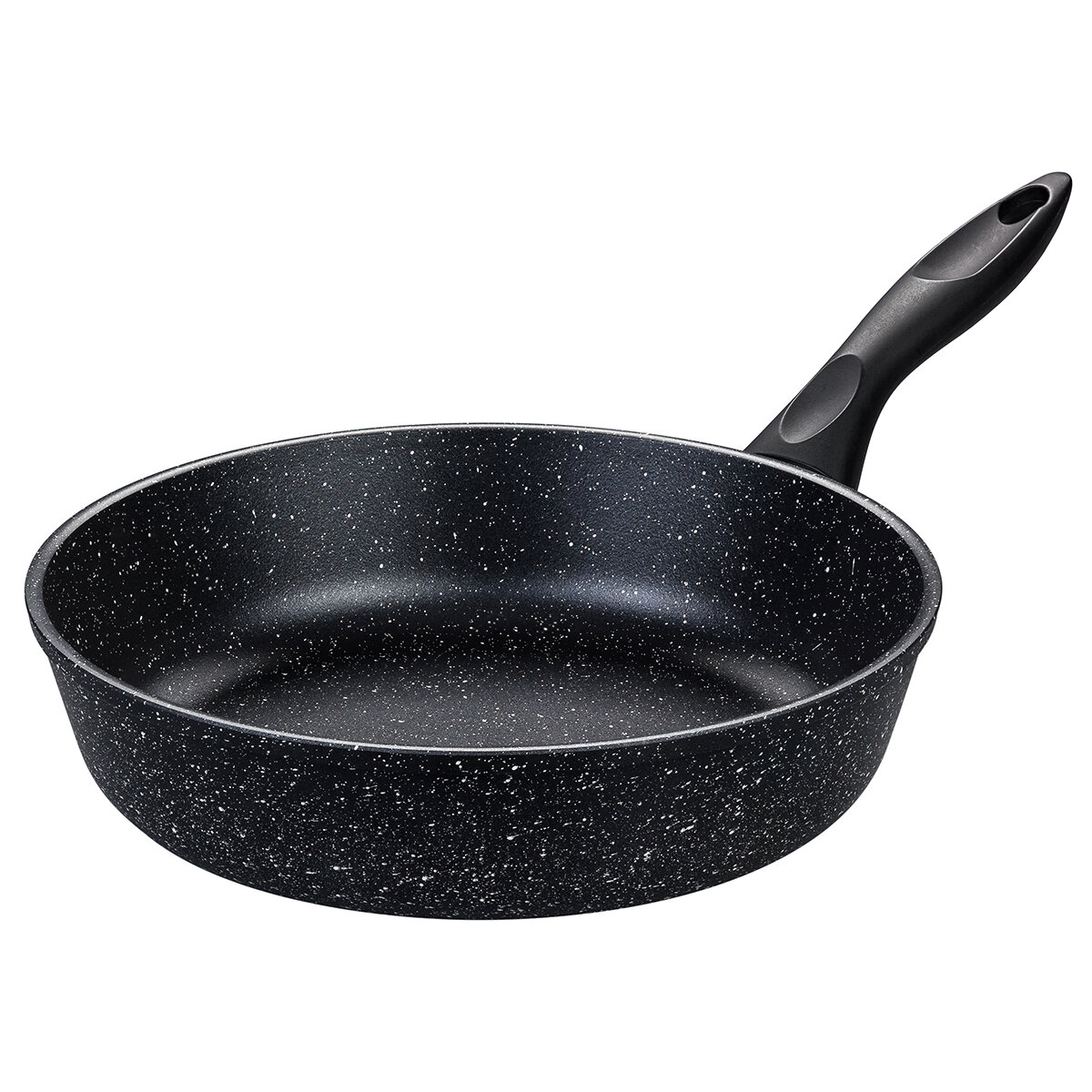 Сковорода глубокая 26 см Elan Gallery гармония вкуса Черный мрамор толстостенная из литого алюминия с двухслойным антипригарным покрытием без крышки с несъемной ручкой, для дома, для приготовления, подарок