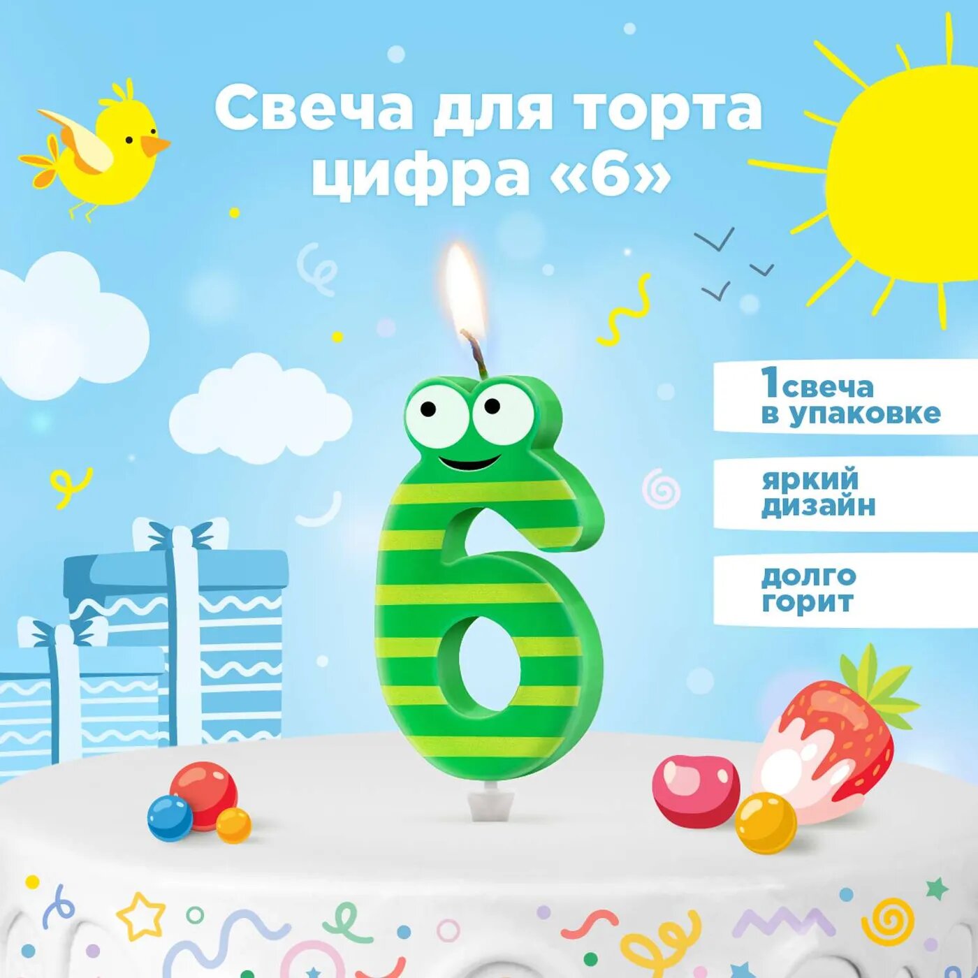 Свечи для торта PATERRA 1шт детская, цифра 6