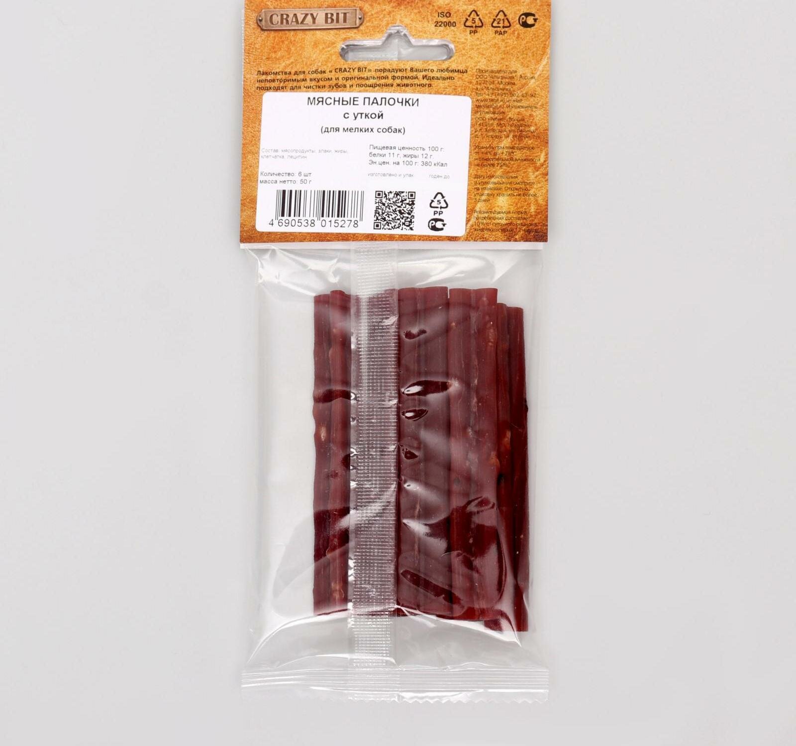 Титбит 015278 Crazy Bit Лакомство для мелких собак Мясные палочки с уткой 50г