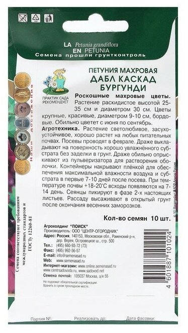 Семена Петуния махровая "Поиск" Дабл каскад Бургунди 10шт