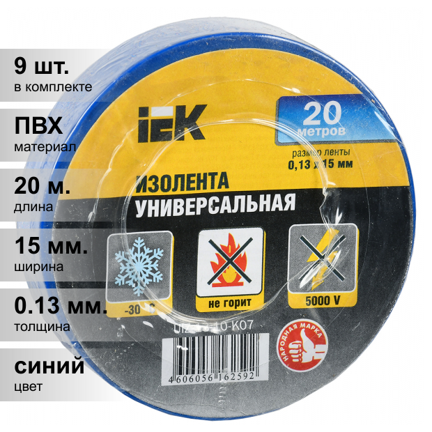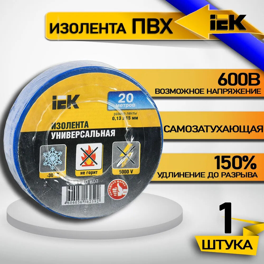 Изолента ПВХ 0.13х15мм (рул.20м) син. IEK UIZ-13-10-K07 (1 шт.)