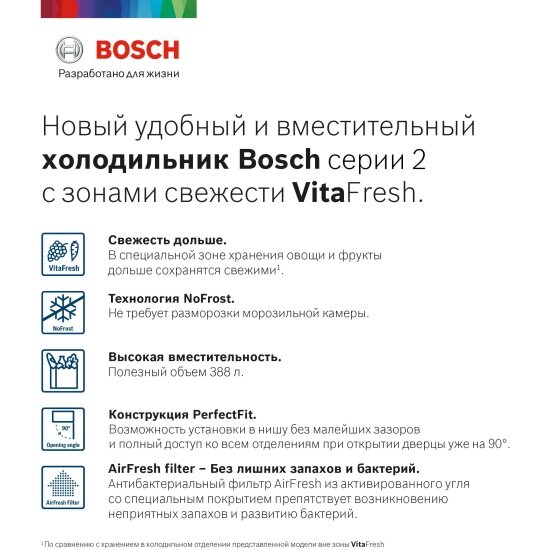 СохранитьХолодильник BOSCH Serie|2 VitaFresh KGN36NW21R интересное: