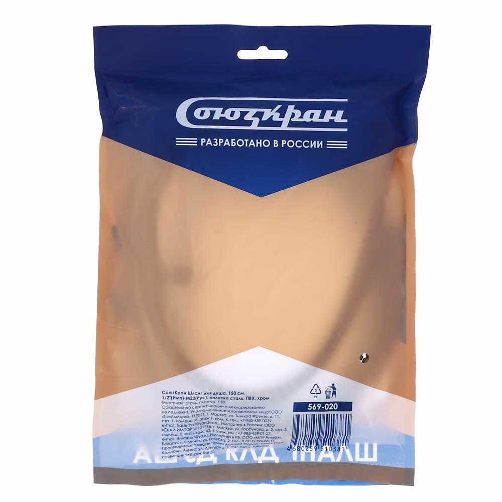 СоюзКран Шланг для душа 150 см, 1/2"(Имп)-М22(Рус), сталь, пластик, ПВХ 569-020