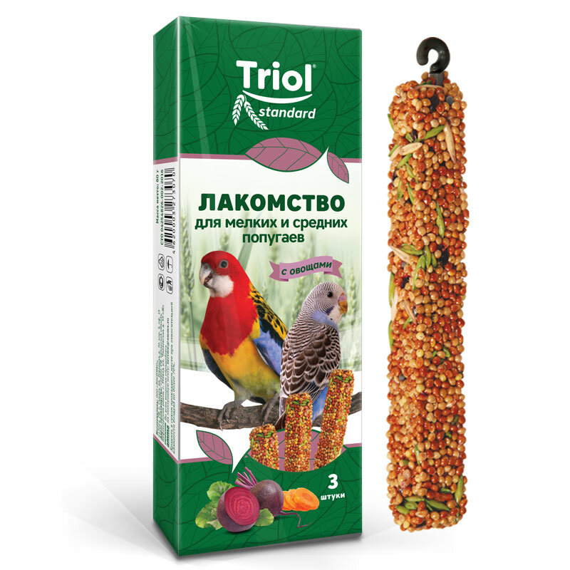 Triol Лакомство для мелких и средних попугаев с овощами (уп. 3 шт), 80 гр интересное: