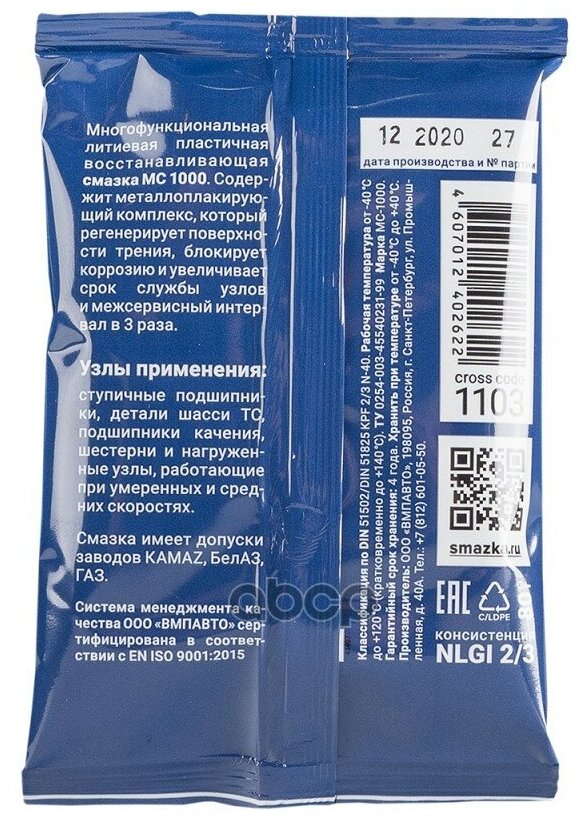 Смазка Мс-1000 Многоцелевая 400гр. Вмпавто 1105 ВМПАВТО арт. 1105