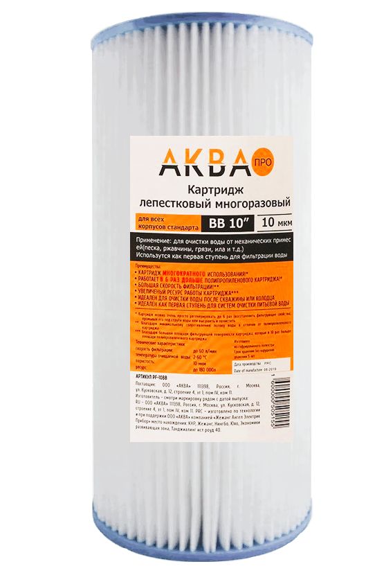 Картридж из полиэстра, многократный лепесток, 10BB, 10 микрон аква про Кит. PF-10BB. 420