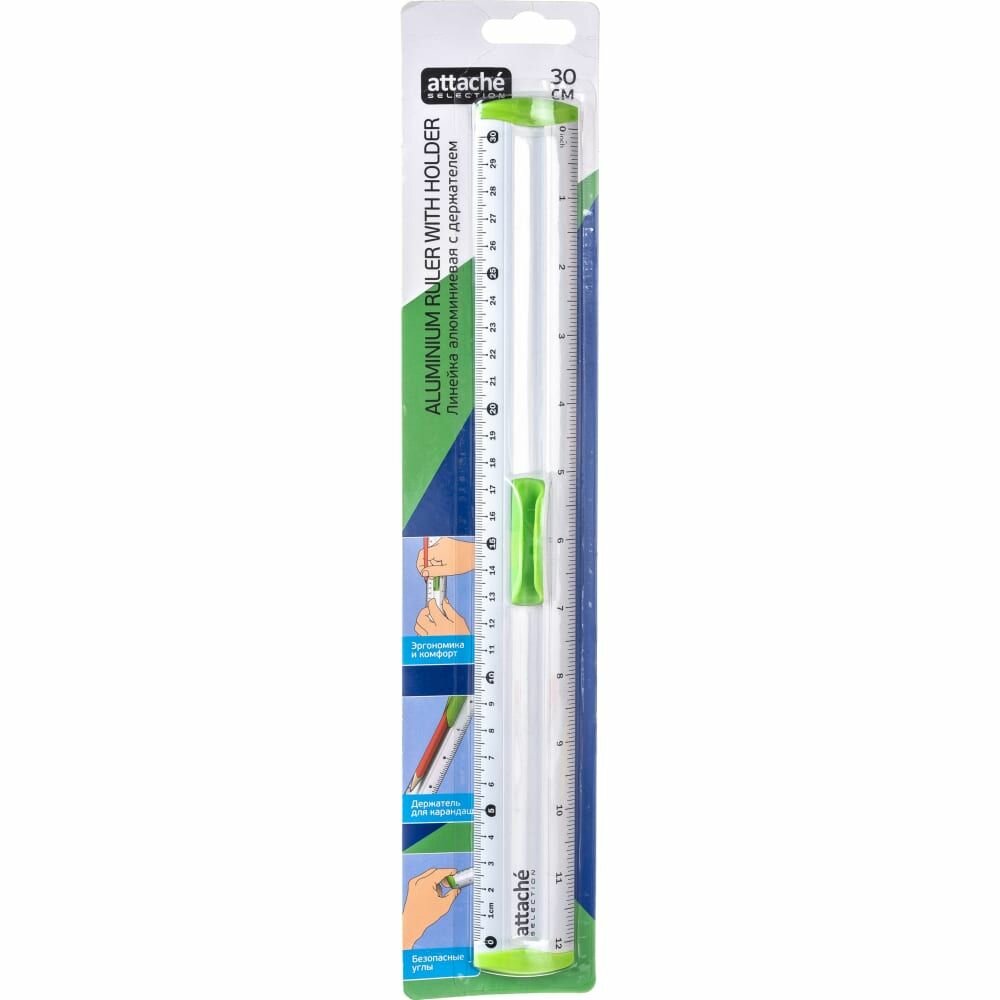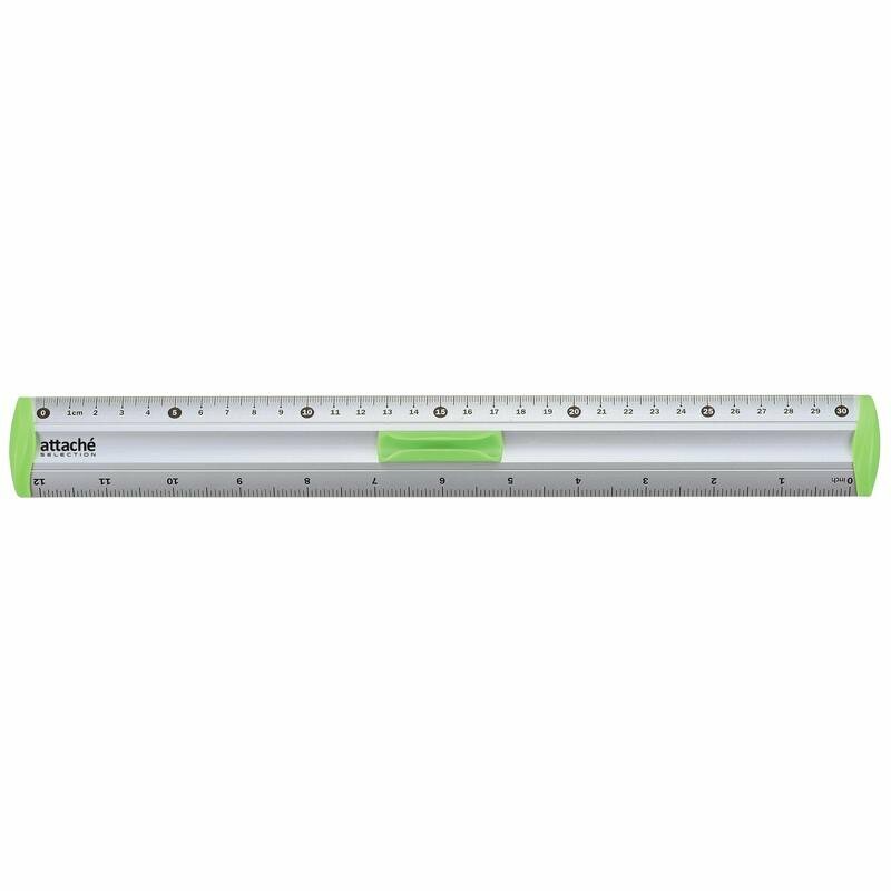 Линейка Attache Selection 30см aluminium с держателем зеленый