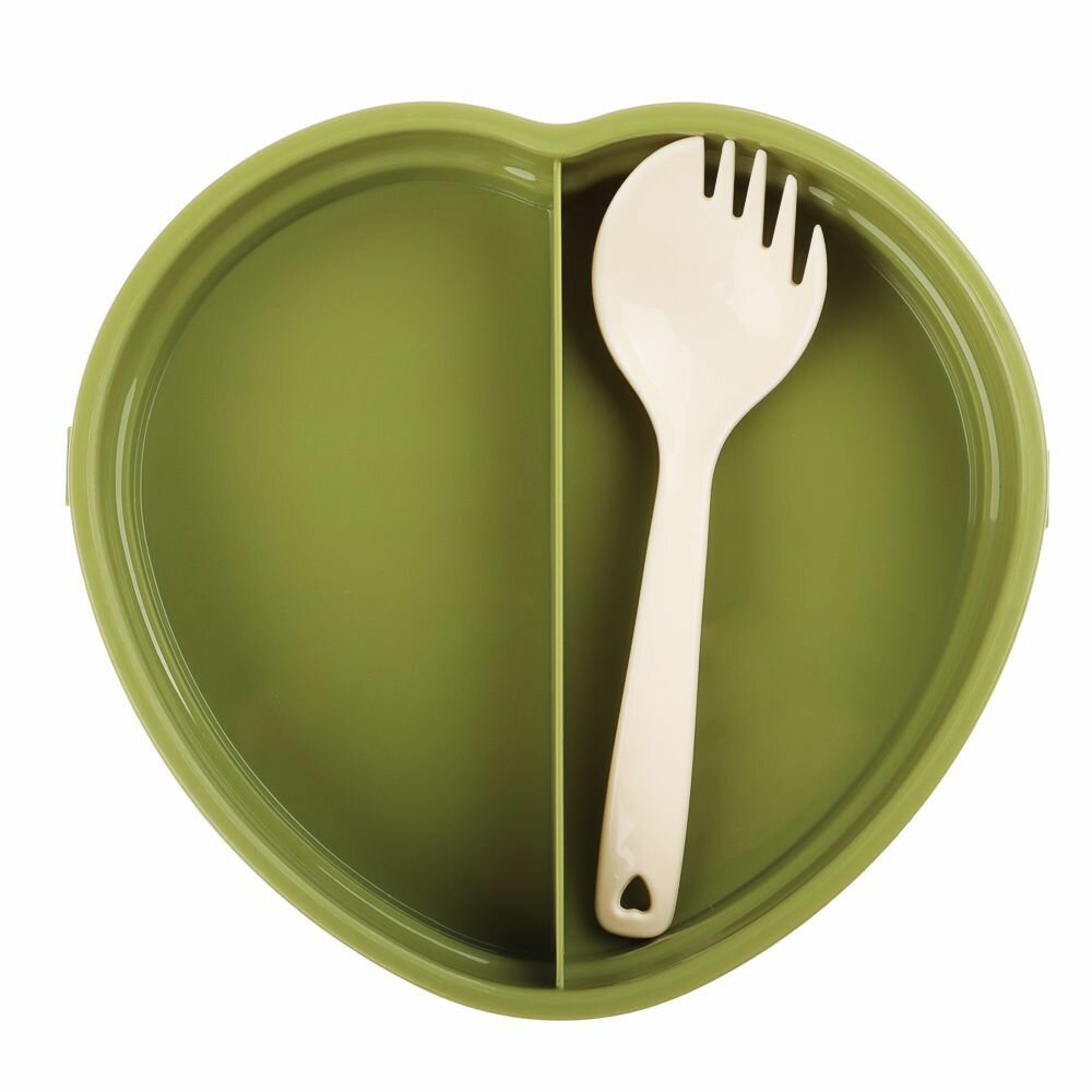 Ланчбокс в форме сердечка, тарелка, ложка-вилка, 13, 5х16 см, пластик, "Зайчата
