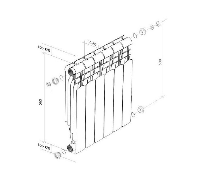 Радиатор секционный Royal Thermo Vittoria Super 500, кол-во секций: 4, 7 м2, 700 Вт, 320 мм.биметаллический