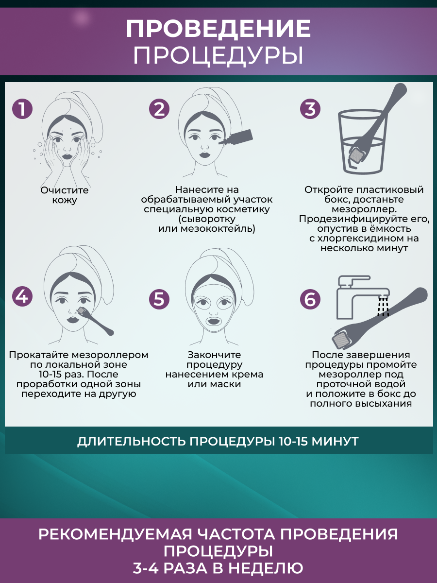 | Минусы: | если у вас будет шелушиться кожа после предыдущего применения мезороллера, то частички кожи будут его забивать, из-за чего необходимо будет чистить, струёй воды не смоет полностью. |