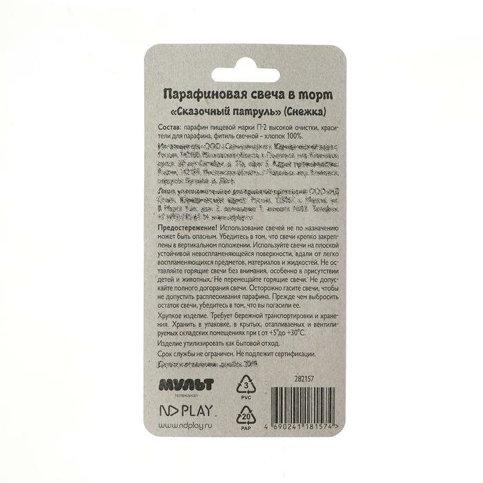Сказочный патруль. Парафиновая свеча в торт (Снежка), в блистере