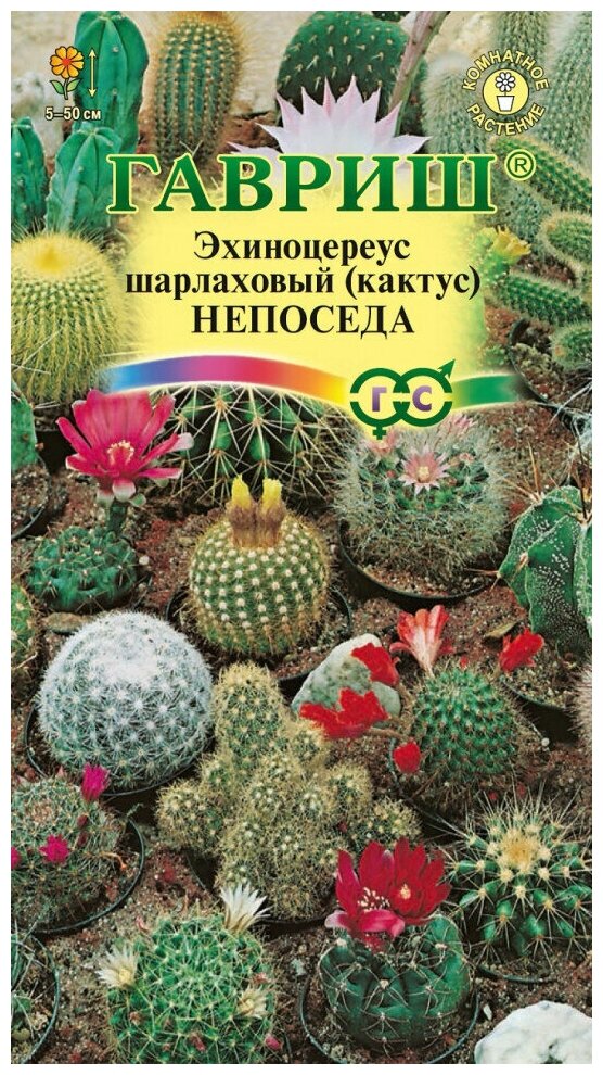 Семена Эхиноцереус шарлаховый (кактус) Непоседа, смесь, 0,05 г, Гавриш, Цветочная коллекция, 10 пакетиков