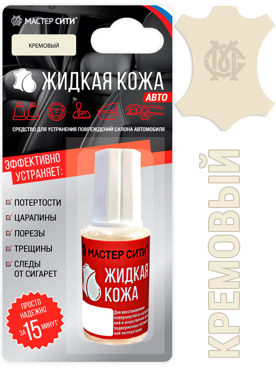 Жидкая кожа для авто мастер сити, 20 мл / Кремовый