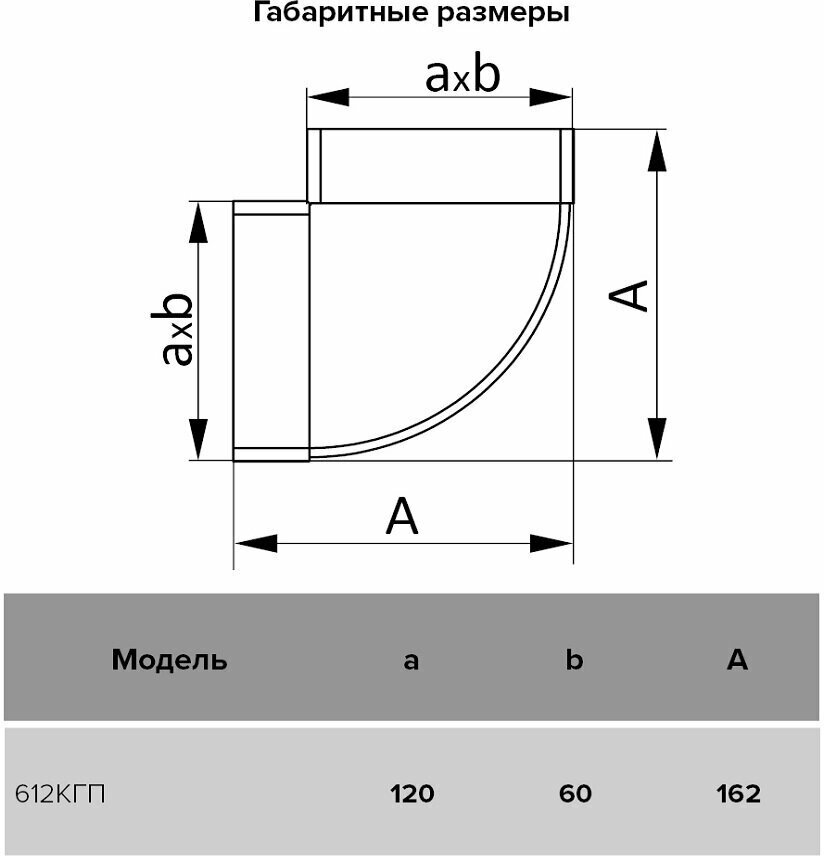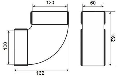 612КГП Колено горизонтальное 90 для плоских каналов 60х120 мм