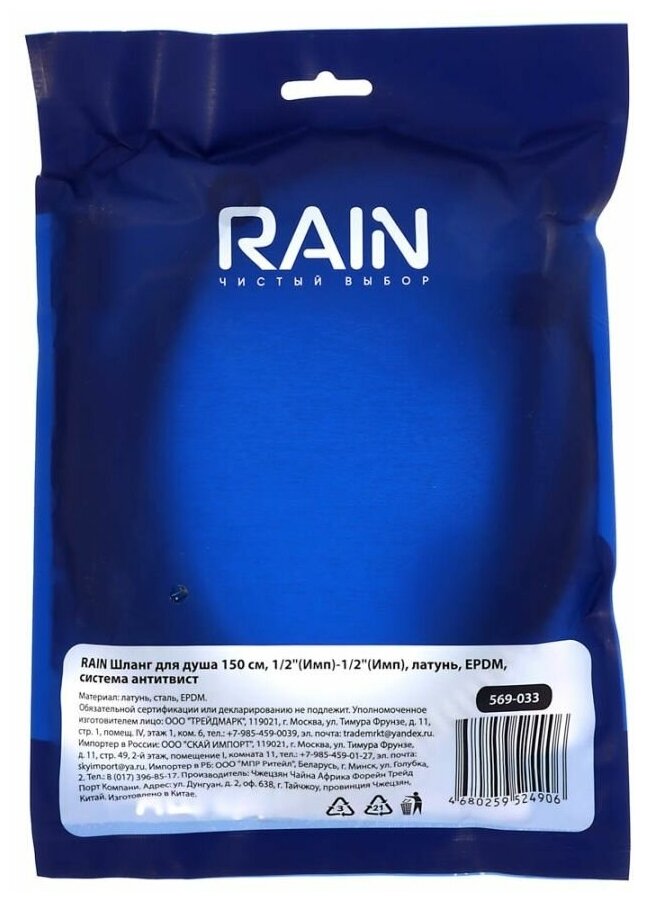 Ниже Вы можете прочитать отзывы на RAIN Шланг для душа 150см, 1/2"(Имп)-1/2"(Имп), латунь, EPDM, система антитвист, ознакомится с подробными характеристиками, посмотреть интересные обзоры и фотографии на RAIN Шланг для душа 150см, 1/2"(Имп)-1/2"(Имп), латунь, EPDM, система антитвист.