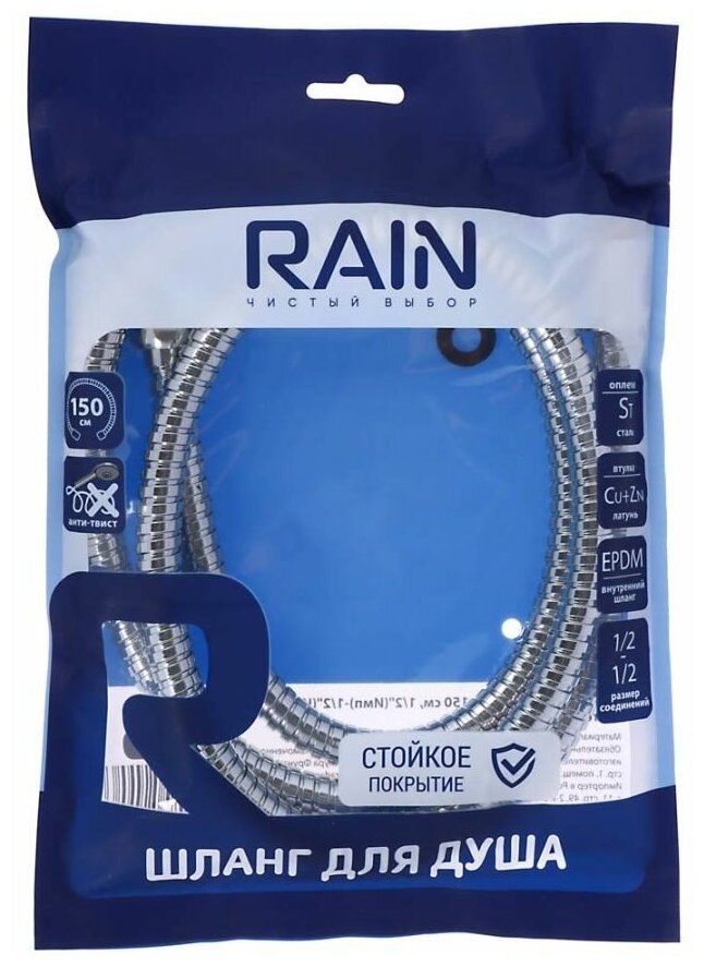 Купить RAIN Шланг для душа 150см, 1/2"(Имп)-1/2"(Имп), латунь, EPDM, система антитвист