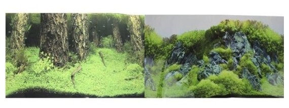 Фон д/аквариума двухстор. 30*60см Затопленный лес/Камни с растениями (9086/9087)/6