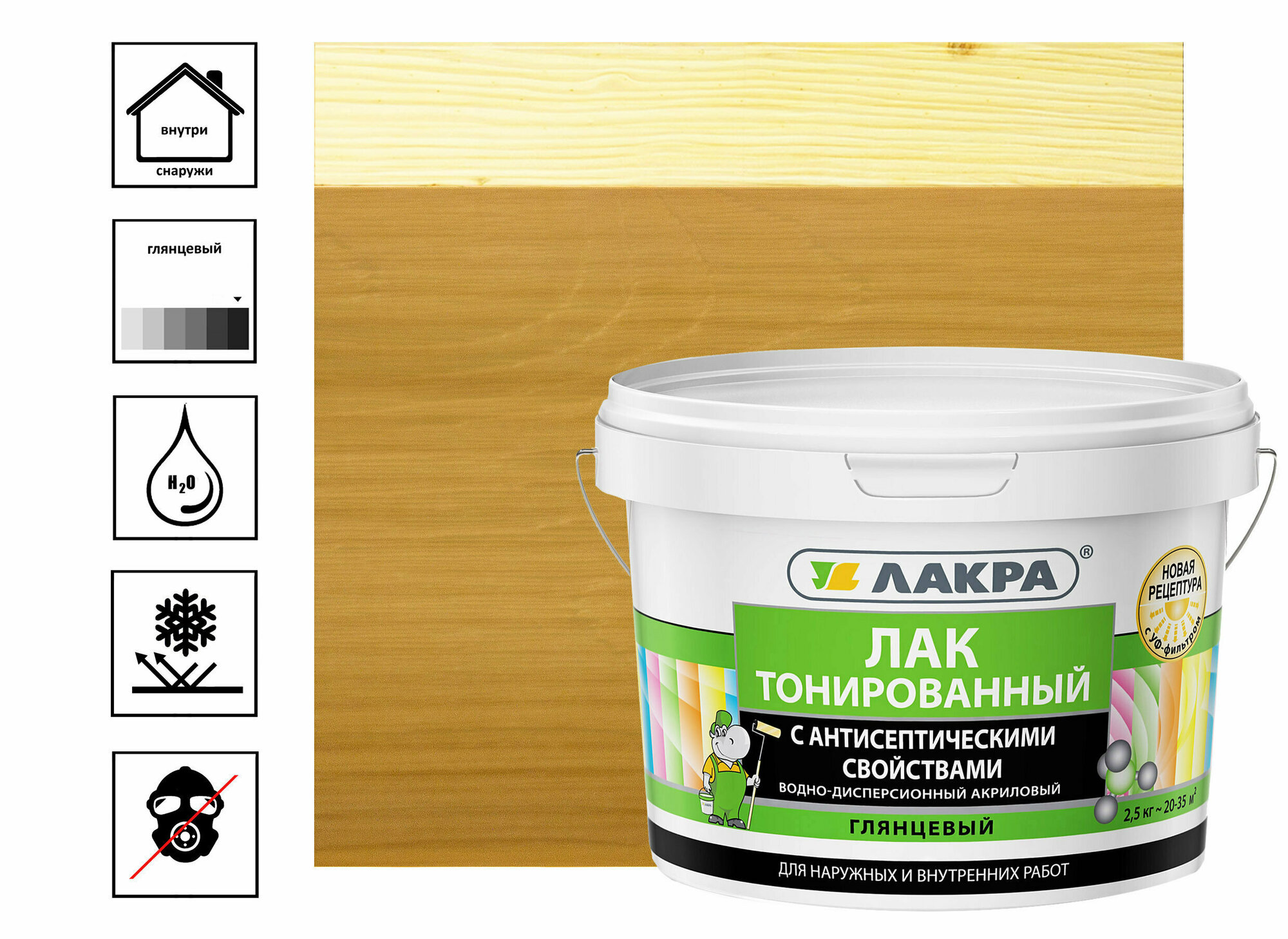 Лак Лакра Тонированный с антисептическими свойствами орегон, глянцевая, 2.5 кг, 2.5 л