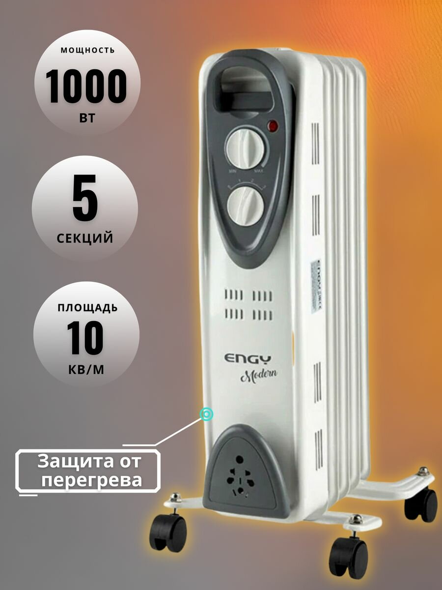 Engy Обогреватель ENGY EN-2205 Modern, масляный, 1000 Вт, 5 секций, белый