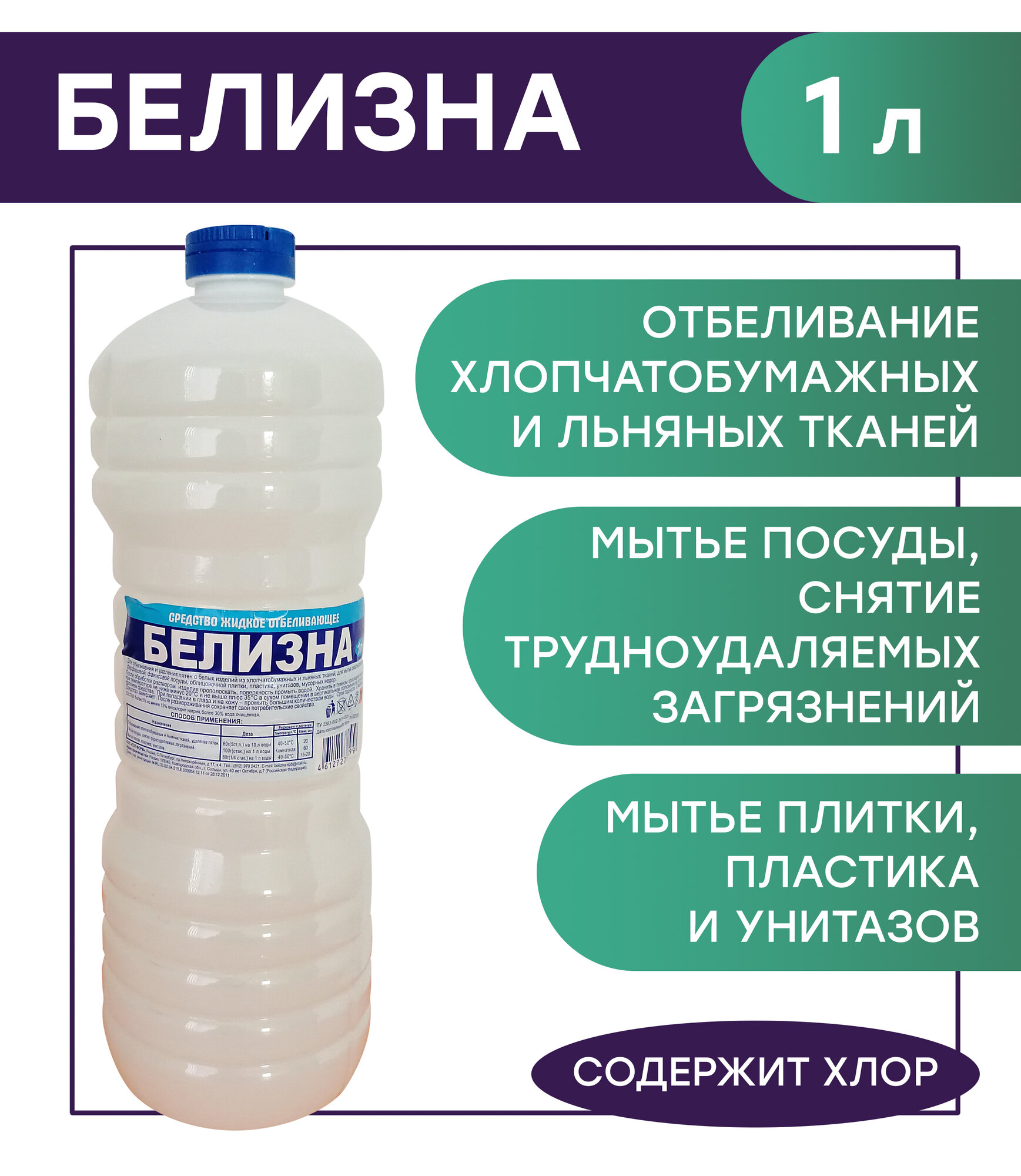 Средство для отбеливания, дезинфекции и уборки 1 л, "Белизна" (хлора 5-15%), жидкость интересное: