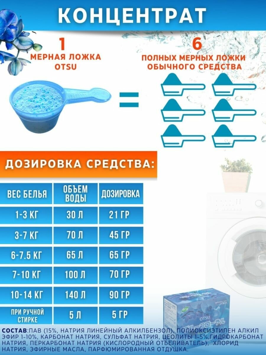 Стиральный порошок Otsu, без фосфатов, с ароматом голубых орхидей, 2,5 кг