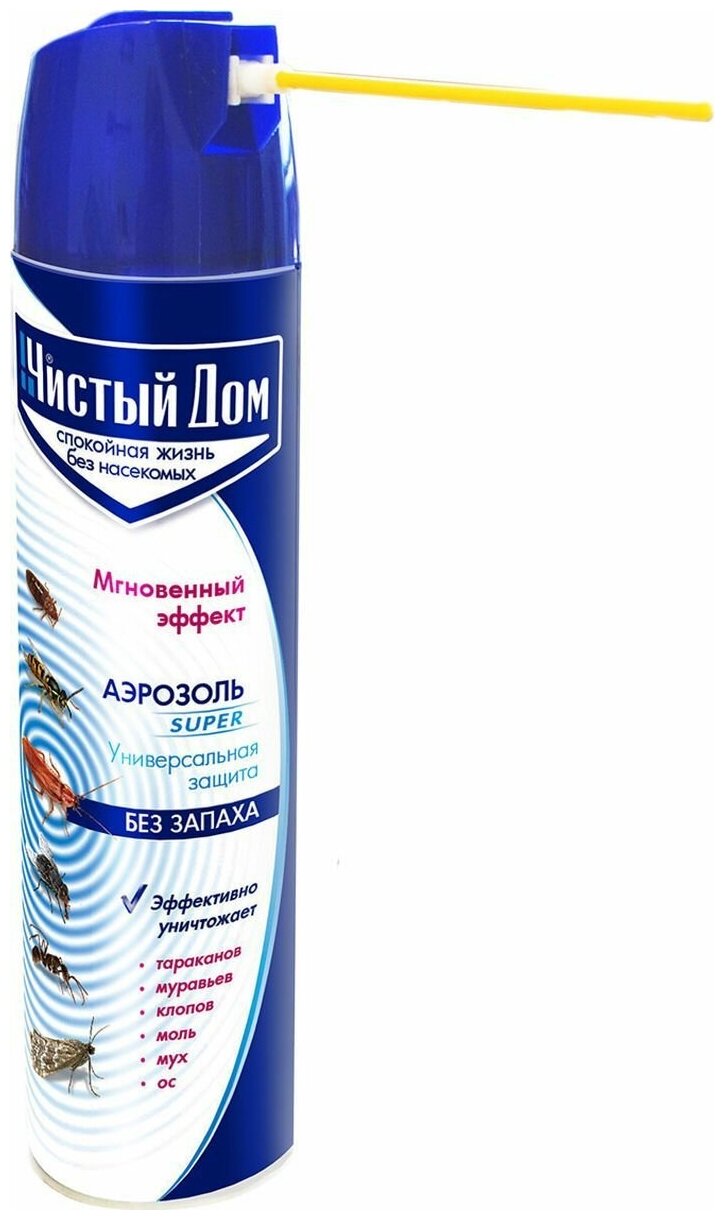 Аэрозоль Супер от насекомых "Чистый дом", универсальный, без запаха, 400 мл./В упаковке шт: 1