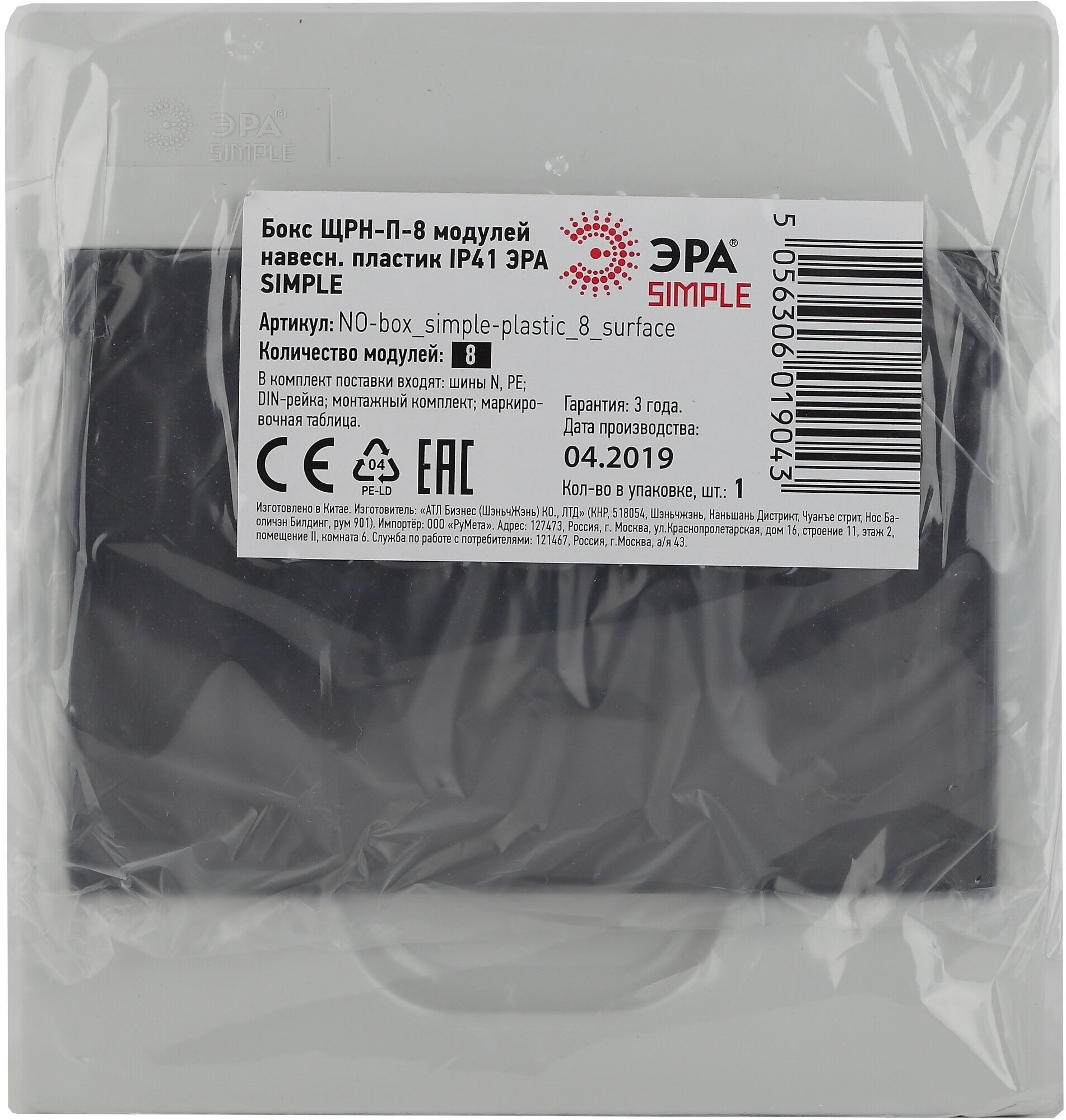 Бокс ЩРН-П-8 мод. навесной пластик IP41 SIMPLE NO-box_simple-plastic_8_surface | код. Б0041523 | Эра ( 1шт. )
