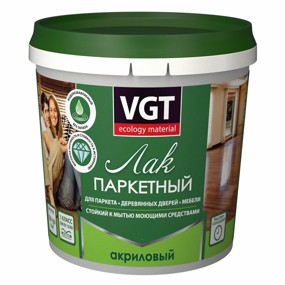 Паркетный лак Vgt (ВГТ), акриловый, полуматовый, 0,9 кг