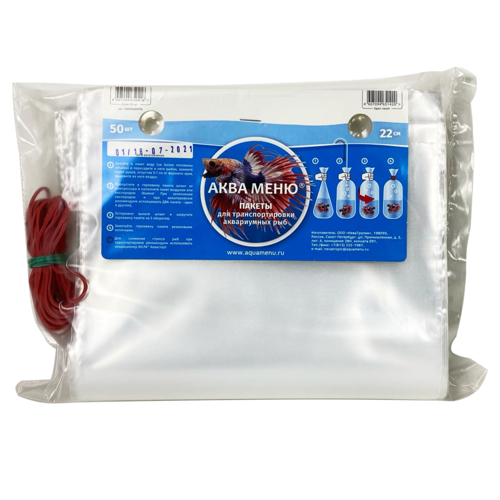 Аква Меню пакет для транспортировки рыб 50шт 220мм