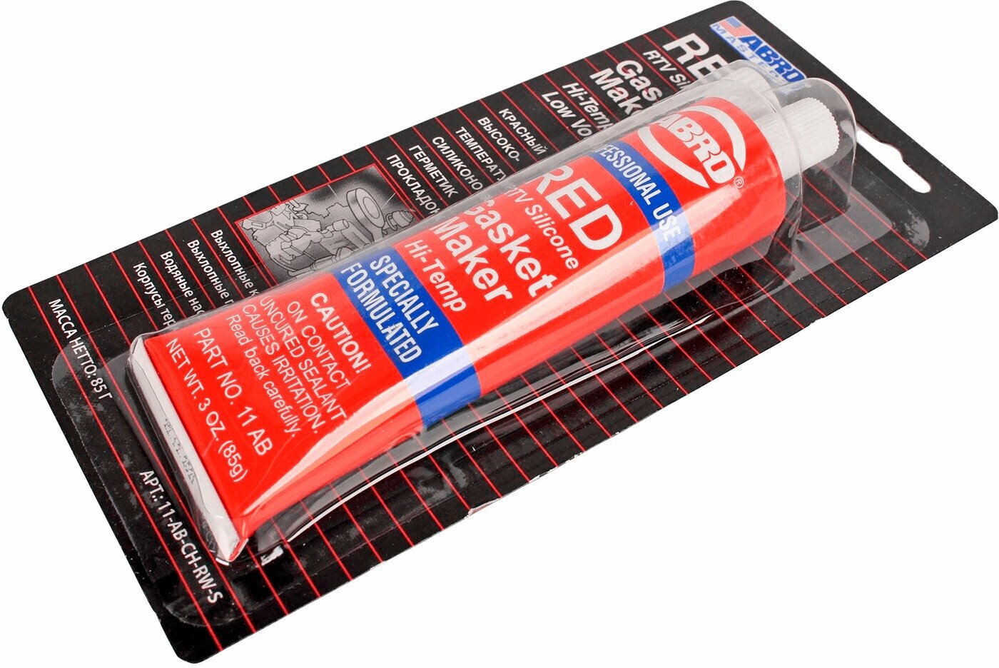 ABRO 11-AB Герметик 85гр - прокладочный красный силиконов. на уксусной основе для клапанных крышек, масл. насосов, водяных помп, крышек КПП, дифференциалов и др., до 343С