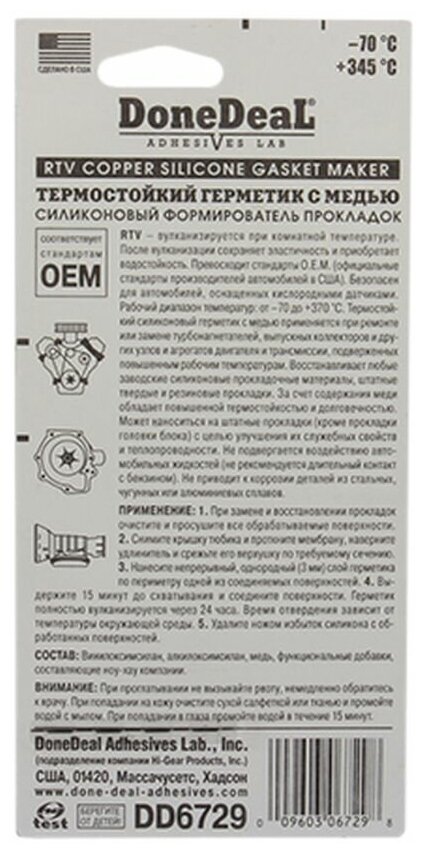 DoneDeal Термостойкий герметик-формирователь прокладок силиконовый, с медью 42,5g, шт