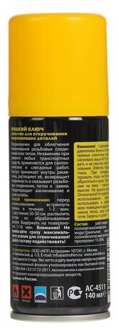 Средство Для Откручивания Приржавевших Деталей, Astrohim "Жидкий Ключ" -Аэрозоль 140 Мл Ac-4511 ASTROHIM арт. AC4511