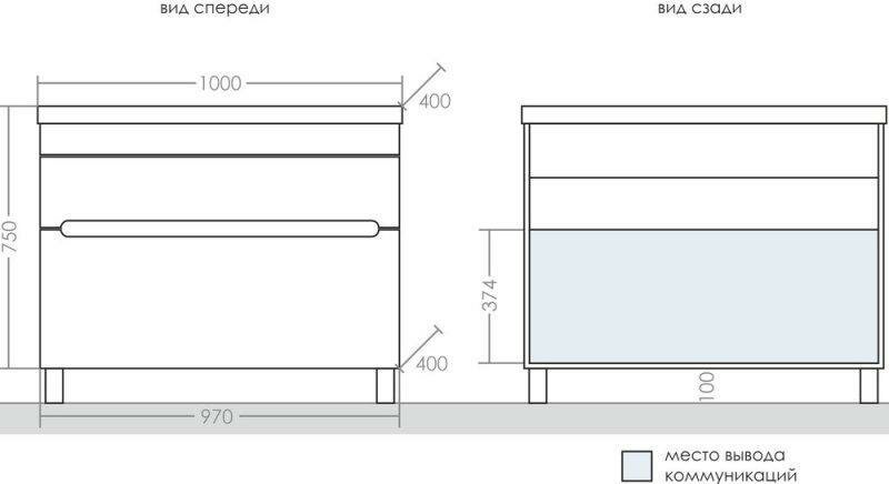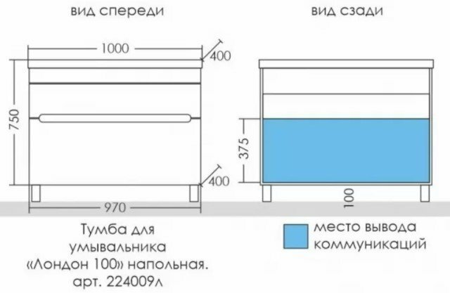 Тумба под раковину "Лондон 100" 2 ящика, напольная. (для ум. Фостер 100)
