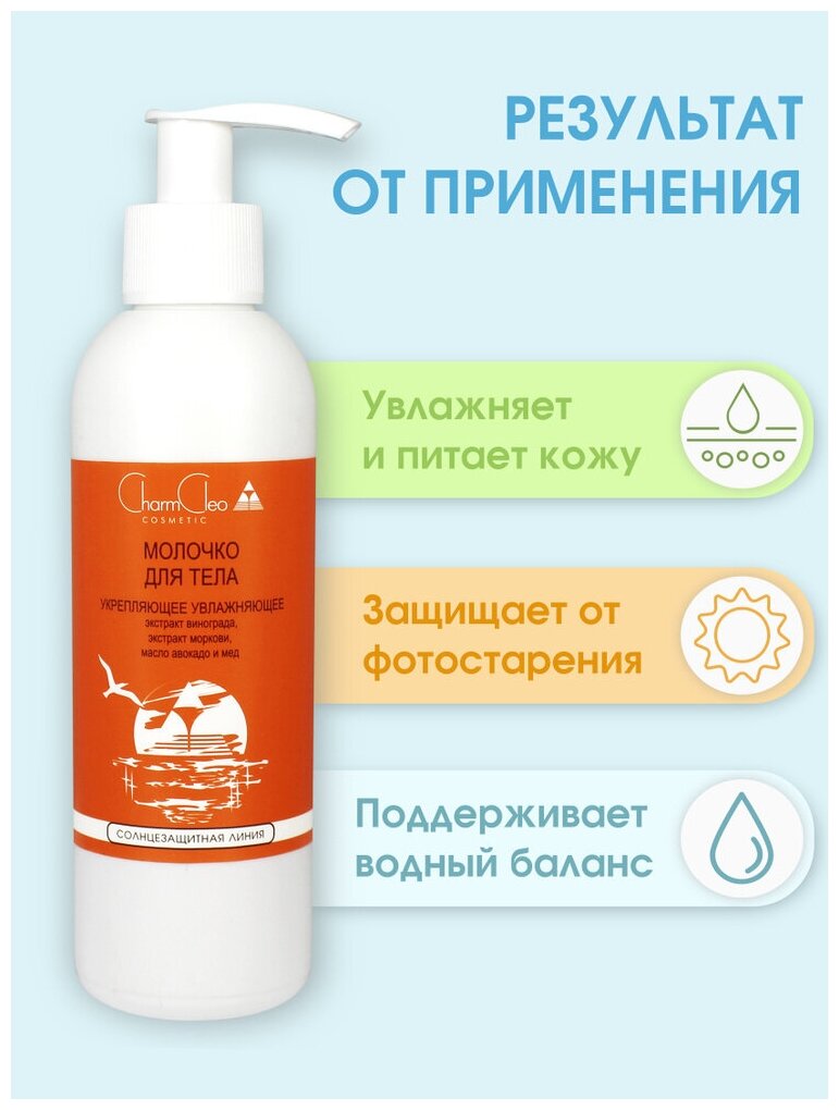 Молочко для тела увлажняющее Charm Cleo Cosmetic укрепляющее, солнцезащитное c SPF 200 мл интересное: