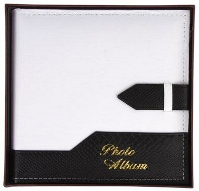 Фотоальбом BRAUBERG на 200 фото. 10х15 см, под замшу, бумажные страницы, бокс, белый с черным, 39111 И 4606224216058