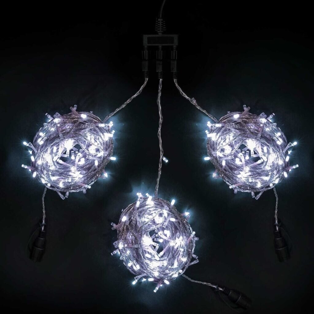 Комплект 3 Белых Нити по 20м c Контроллером, 600 LED, Провод Прозрачный Силикон, IP65 Laitcom