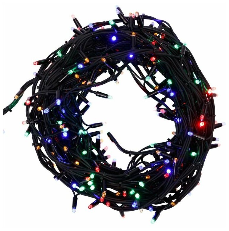 Светодиодная гирлянда NEON-NIGHT "Твинкл-Лайт" 20 м, 8 режимов, 240 разноцветных светодиодов, черный каучуковый провод