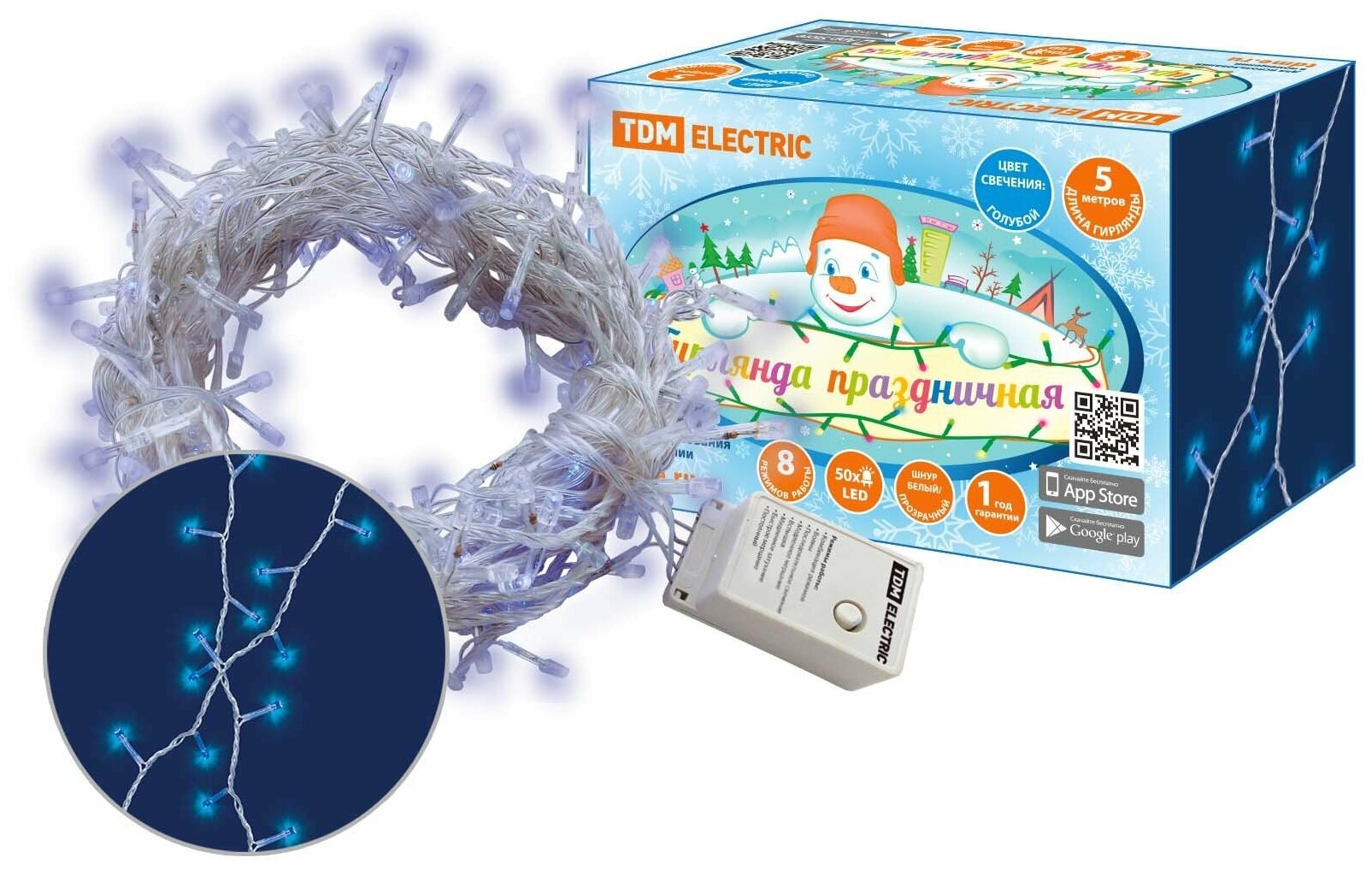 Гирлянда светодиодная TDM Electric, голубая, 5метров, 8 режимов