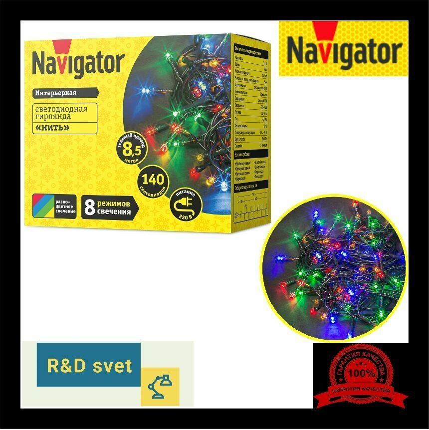 Гирлянда 61 814 NGF-S01-140RGBY-5-8.5m-230-C8-G-IP20 Navigator 61814 ( 1шт. )